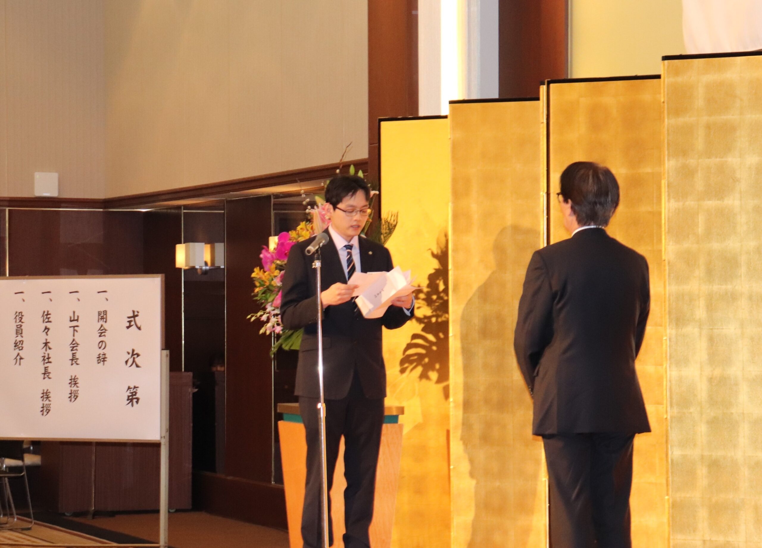 山下会長、佐々木社長より祝辞が述べられ、新入社員へ向けて温かい歓迎のメッセージが送られました。